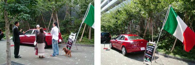 2008年10月19日(日)、シティータワー大阪で開催されたヨーロッパ車両展示会“CTOアニバーサリー”で、アルファ159を展示しました。清々しい秋晴れのもとで大変マッチしたアルファロメオはシティタワーマンションのお住まいの方々とご招待客のお客様にご好評をいただきました。